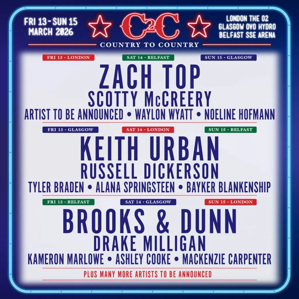 You could WIN flights, a 4-night hotel stay, welcome dinner, a London excursion experience AND passes for Country to Country Festival at the O2 Arena.